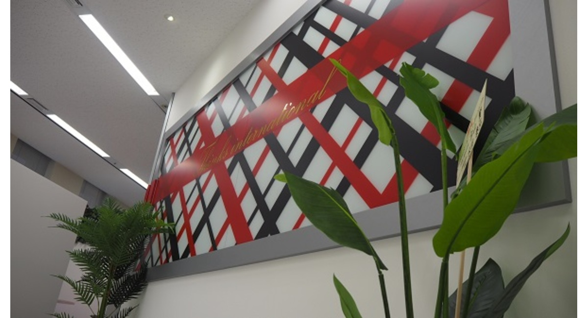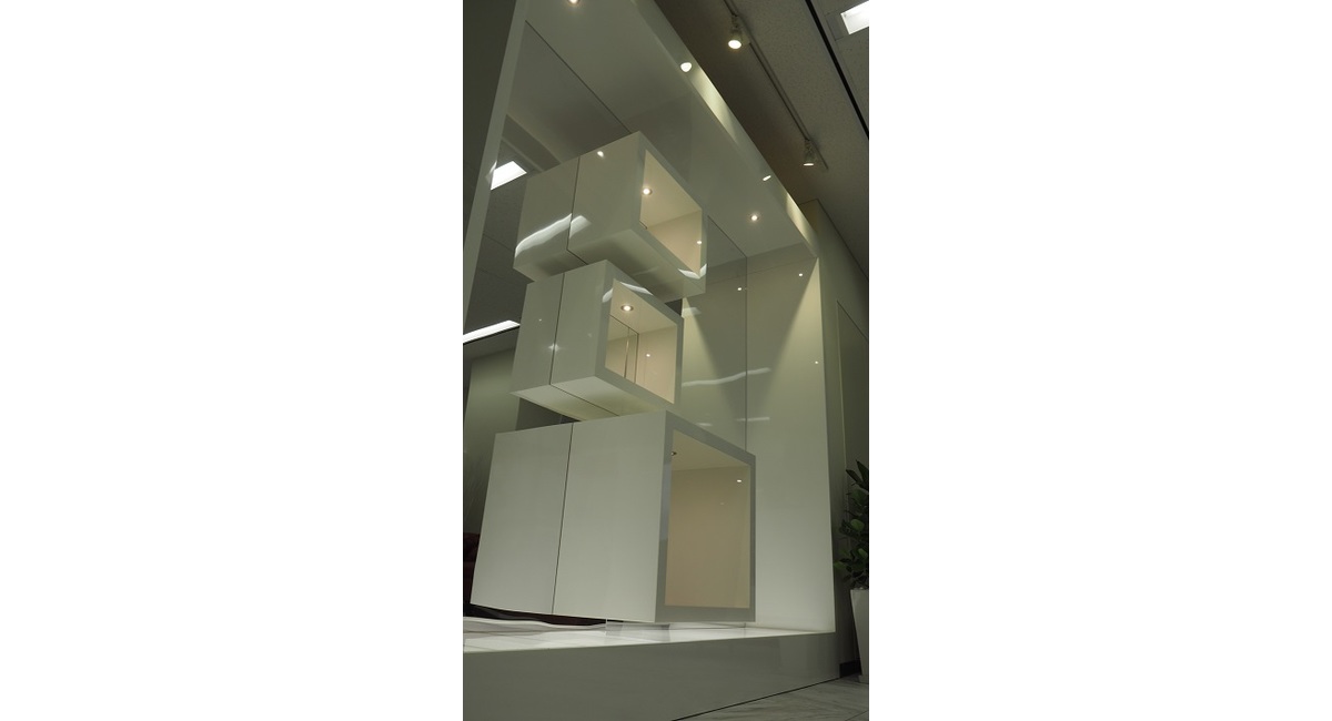 働く女性の為のファッションブランドをコンセプトに活動される会社にふさわしくスタイリッシュさの中にフェミニンさを感じるデザインに。